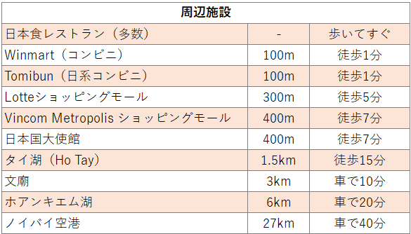 両支店とも日本人が多く滞在する地域にあるため、日本食レストラン・バー・ベトナム式カラオケ・マッサージ・コンビニなどが徒歩圏内にあって不自由しません。
