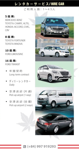 MOMIZI BUSINESS HOTELでは、ビジネスホテルの他に、必要に応じて観光VISAのサポート、レンタカーサービス、ベトナム国内ツアーも提供しておりますので、ベトナムお越しの際は、MOMIZI BUSINESS HOTELへお問合せください!